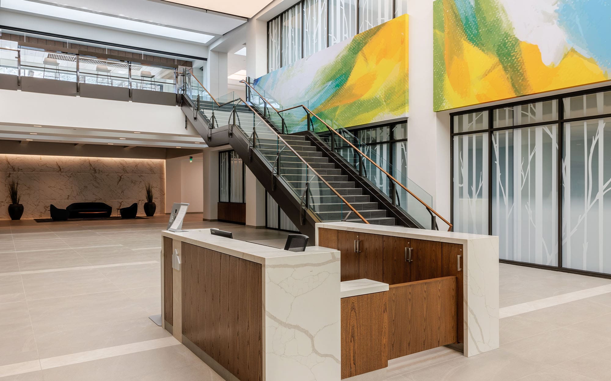 Living Design Studios used Dreamwalls laminated glass for the straight glass railings at the Galleria Office Tower renovation in Denver. What a beautiful combination of custom metalwork and glass. Bravo! Thank you for choosing Dreamwalls for this project!