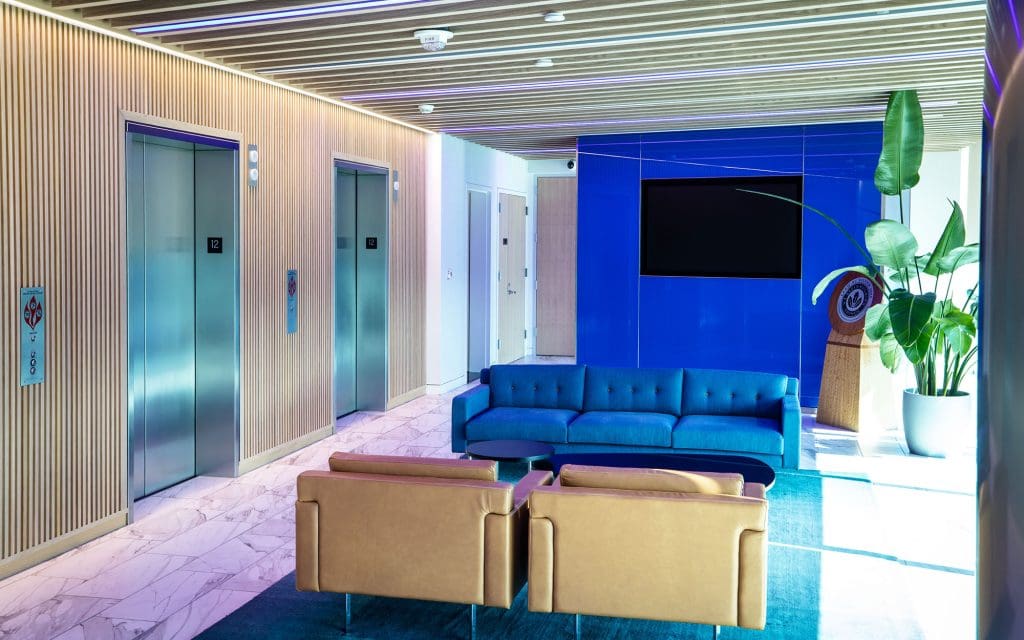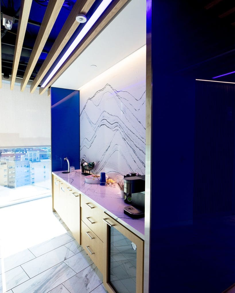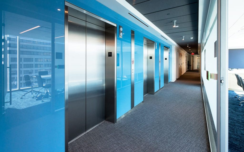 Dreamwalls back painted glass was used in the National Association of REALTORS® D.C. office by the elevators on multiple floors, and by a coffee and refreshment station and TV display.