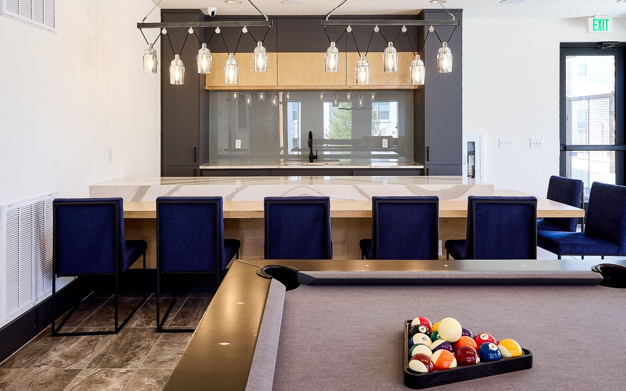 Collin Square Apartments in McKinney, TX features a crisp, modern gray Dreamwalls backpainted glass backsplash in their clubhouse kitchenette. The glass adds a bit of style and color, while also helping reflect light into the space. What a beautiful install by R.E. Watson & Associates. Thank you all for choosing Dreamwalls!