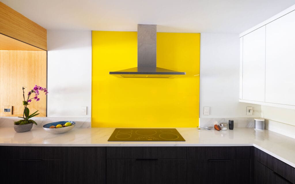 Ready to brighten your day…everyday? This pop of Dreamwalls yellow backpainted glass adds a nice, cheery pop of color to a Florida home. Imagine this in a home, condo, apartment, clubhouse, or office. Happy day! :)