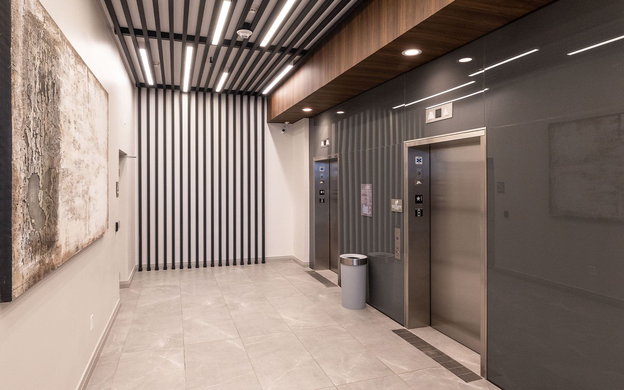 Add a sleek, contemporary touch to your elevator lobbies with Dreamwalls backpainted color glass. Here’s a great example at Live Grandscape Luxury Apartments in The Colony, TX. Thanks Fashion Glass & Mirror for choosing us as your backpainted glass supplier for this job!
